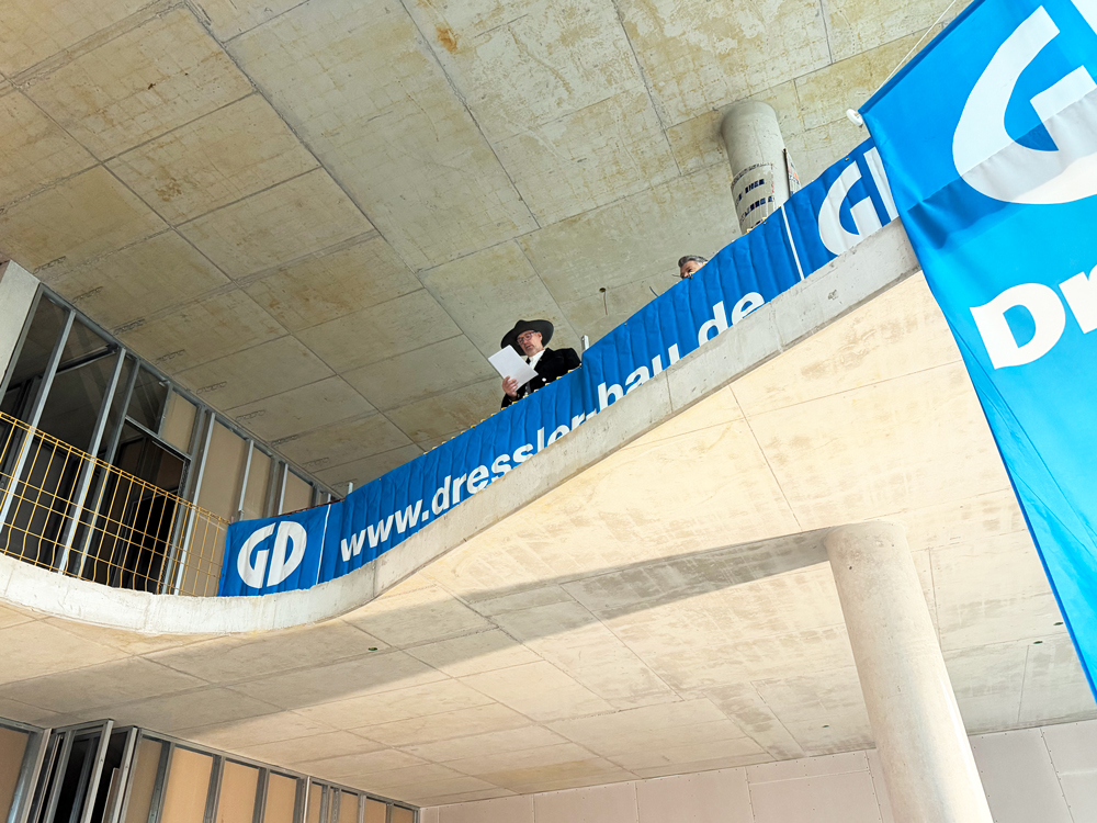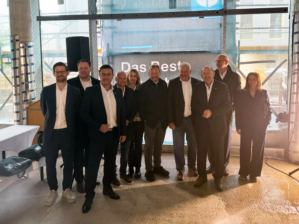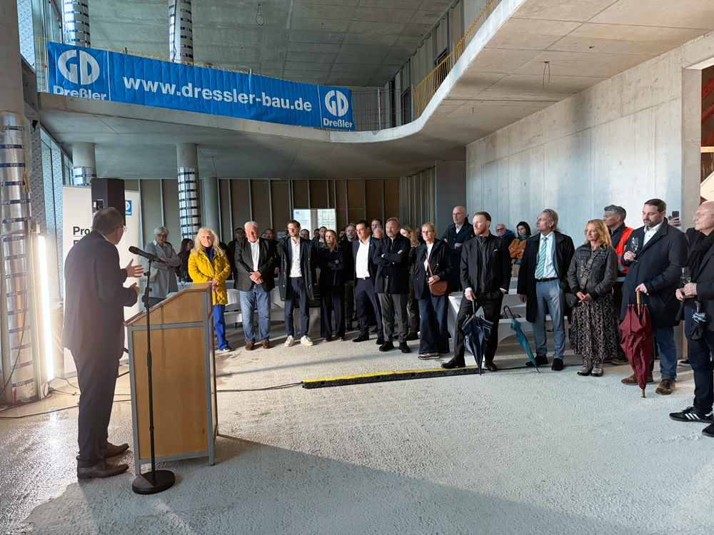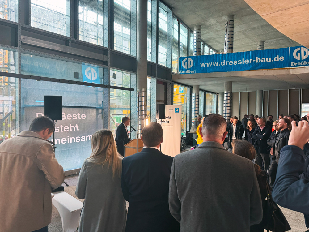 We look forward to moving into our office space next year. Our sincere thanks go to Dreßler Bau for organizing an excellent topping-out ceremony – which, at short notice, even stood up to heavy rain – and to all speakers for their personal words and tributes.